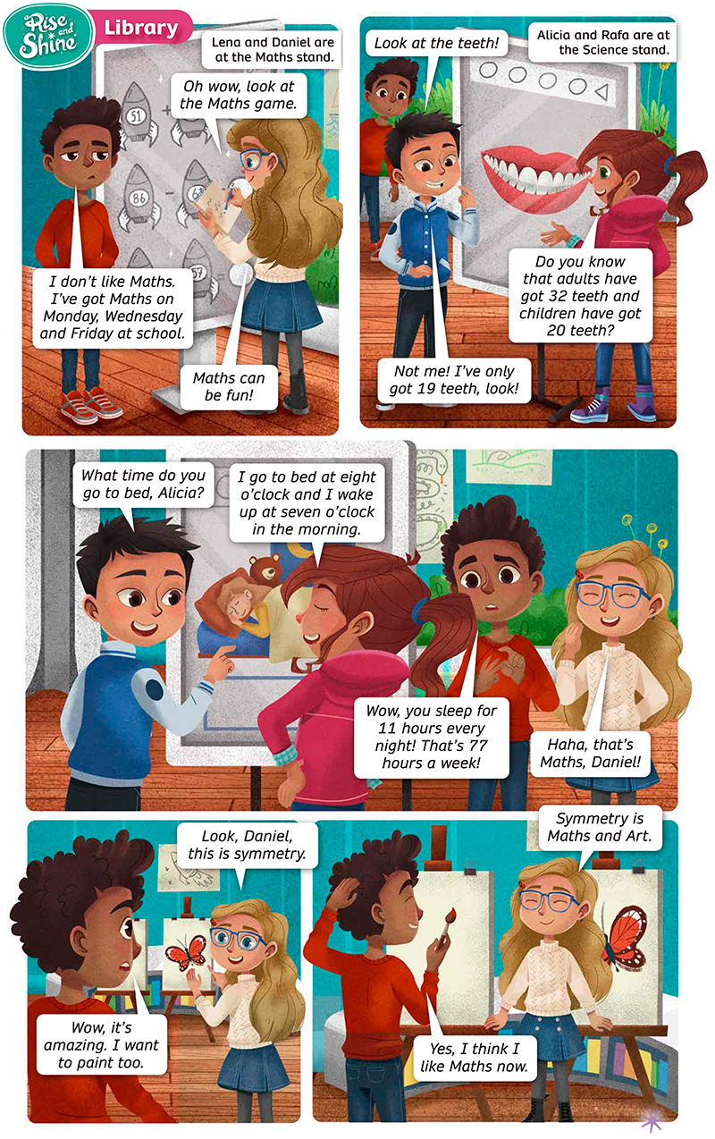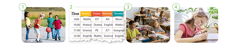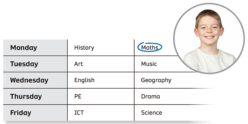 d This is my school timetable. On Monday, I’ve got Maths at nine o’clock.