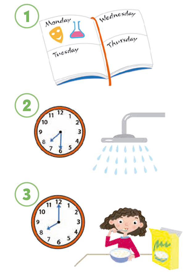 Science Drama have a shower half past seven do you have breakfast at eight o'clock