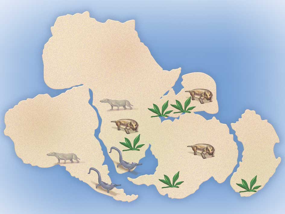 Com explicaries que trobem restes de rèptils terrestres, com Mesosaurus i Lystrosaurus, o plantes com Glossopteris en continents tan allunyats actualment?
