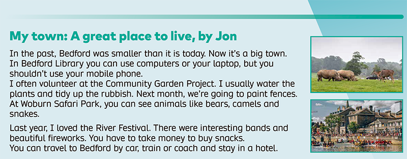 4 What animals can you see at the Safari Park? You can see b, c and s.