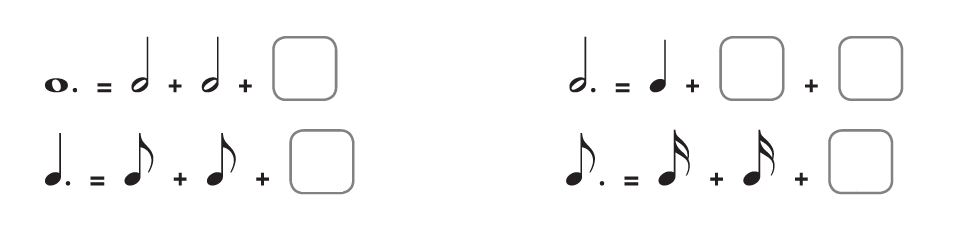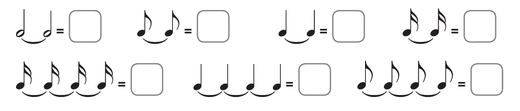 1. Dibuja la figura de nota correspondiente en cada cuadro.
