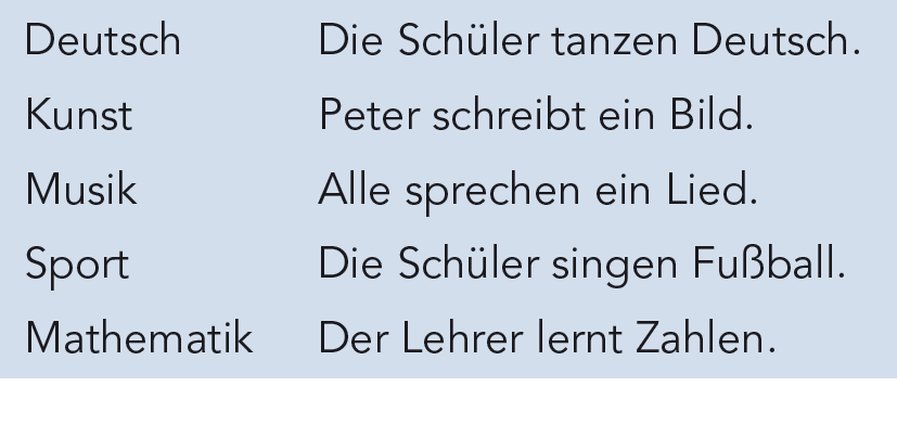 Die Schueler spielen Fussball. Peter malt ein Bild. Die Schüler lernen Deutsch. Die Schüler spielen Fußball. Alle singen ein Lied. Der Lehrer schreibt Zahlen.