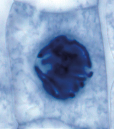 - En la profase, los cromosomas comienzan a condensarse, la envoltura nuclear se fragmenta, el nucleolo se desintegra, y empiezan a formarse los filamentos proteicos que darán lugar al huso acromático.