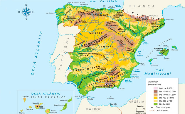 1. On es localitza la Meseta? Quina altitud mitjana té?