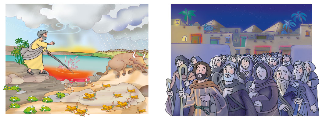 —Pues no —aseguró papá—, porque estas pirámides se construyeron mil años antes de que los israelitas llegaran a Egipto. Pero es verdad que los israelitas trabajaron como esclavos en otros lugares del país y sufrieron mucho, hasta que Dios escogió a Moisés para liberarlos. Moisés tuvo que enfrentarse al faraón, que era muy temible y poderoso. Algunos piensan que ese faraón era Ramsés II, del que todavía se conserva la momia.