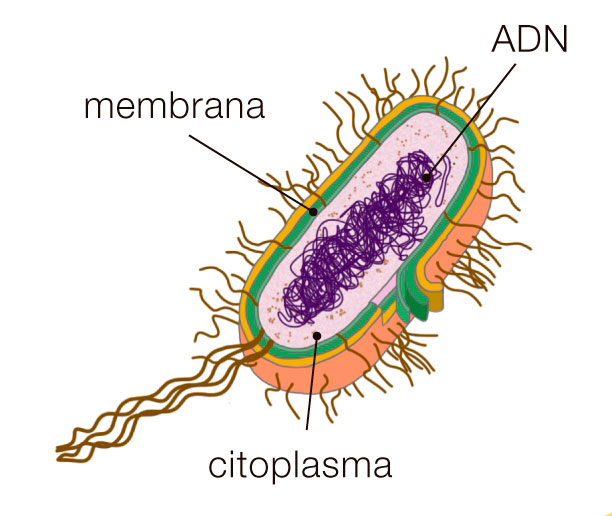 Cèl·lula procariota: membrana, ADN i citoplasma.
