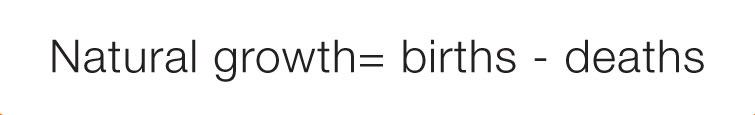 • Natural growth. This is the difference between the number of people who are born in an area in one year and the number of people who die.