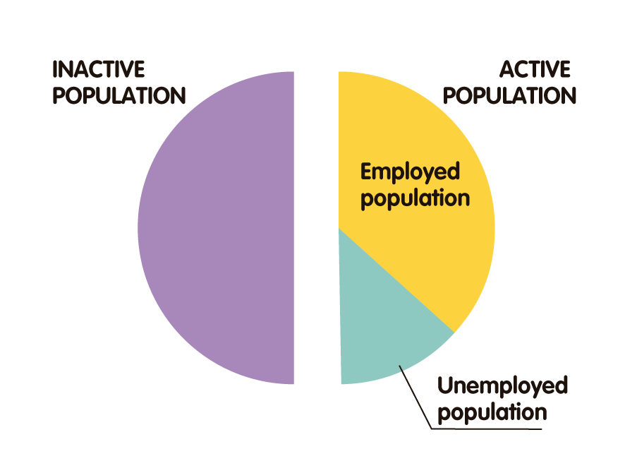 • The active population includes all adults who are able to work. These people are employed and working, or unemployed and looking for work.