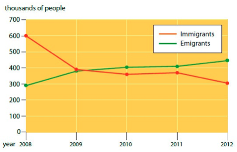 1. Look at the graph. Explain how emigration and immigration have changed  in Spain.