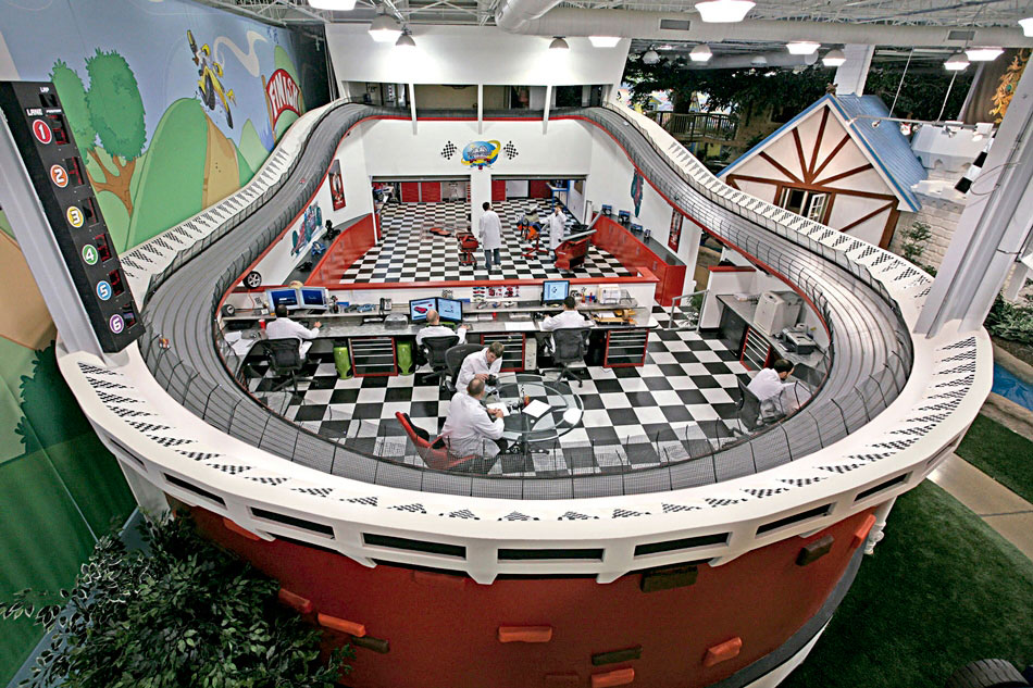 When Davison grew up his dream came true. In a giant warehouse in Pittsburgh, USA, he created a workspace with 16 areas based on different themes: a pirate ship, a giant robot, a race circuit for cars, etc. His employees include engineers, computer technicians and designers.