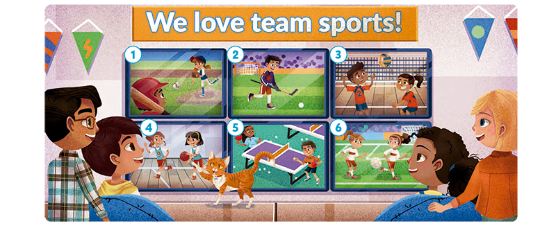 1 Look. What sports can you see?