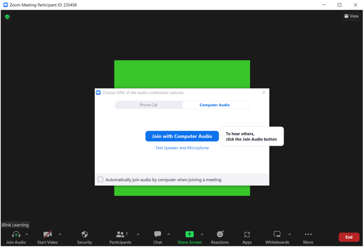 When you are done, go back to BlinkLearning and click on END VIDEOCONFERENCE