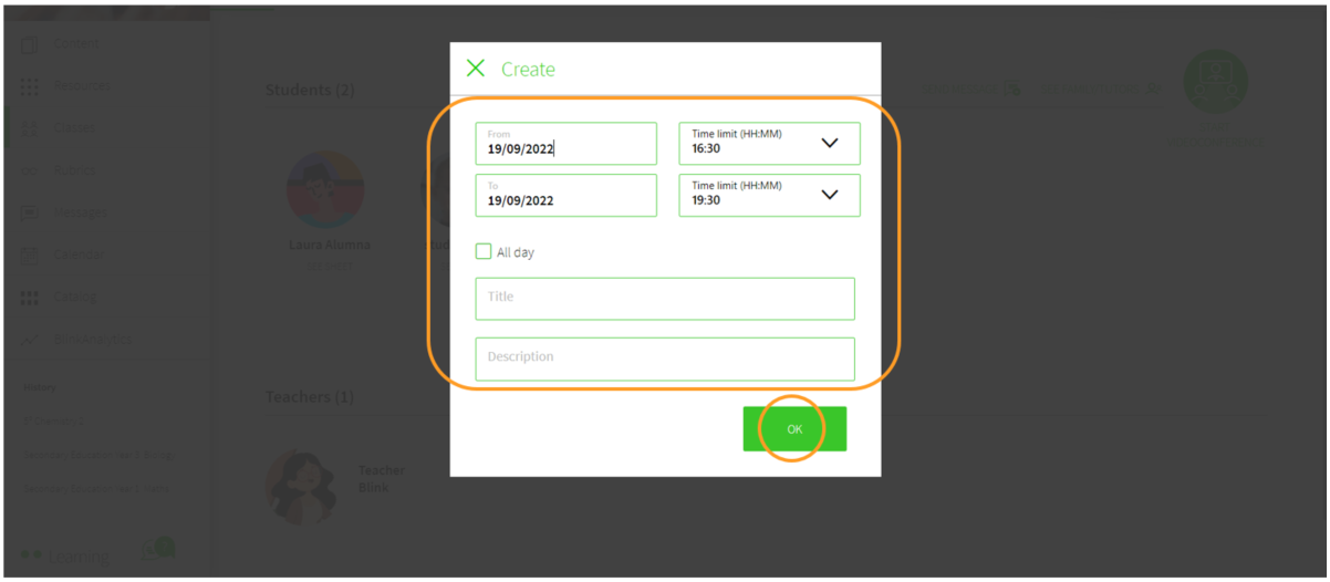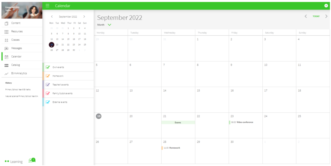 If you have a Premium user as a teacher, you can hold videoconferences with your students by giving them access from BlinkLearning.
