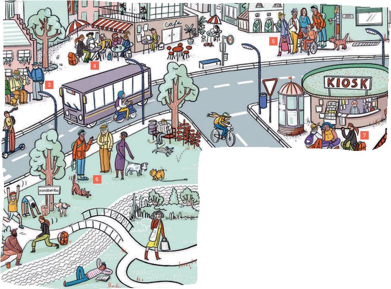 Hören Sie die Gespräche. Zu welchen Situationen auf dem Bild passen sie?