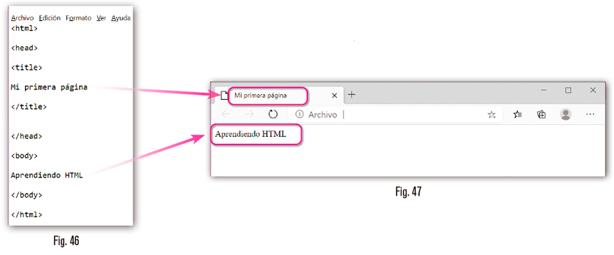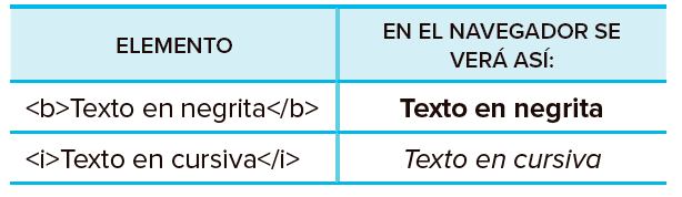 - Un elemento de HTML está compuesto de dos etiquetas (la de apertura y la de cierre). A la derecha se recogen dos ejemplos de elementos y se muestra cómo será su visualización una vez interpretados por un navegador: