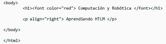 - Las etiquetas se completan con atributos, que son parámetros que definen las propiedades o el comportamiento de la etiqueta; están siempre en la etiqueta de apertura y su valor va siempre entre comillas. En el siguiente ejemplo, color es un atributo de la etiqueta <font>: