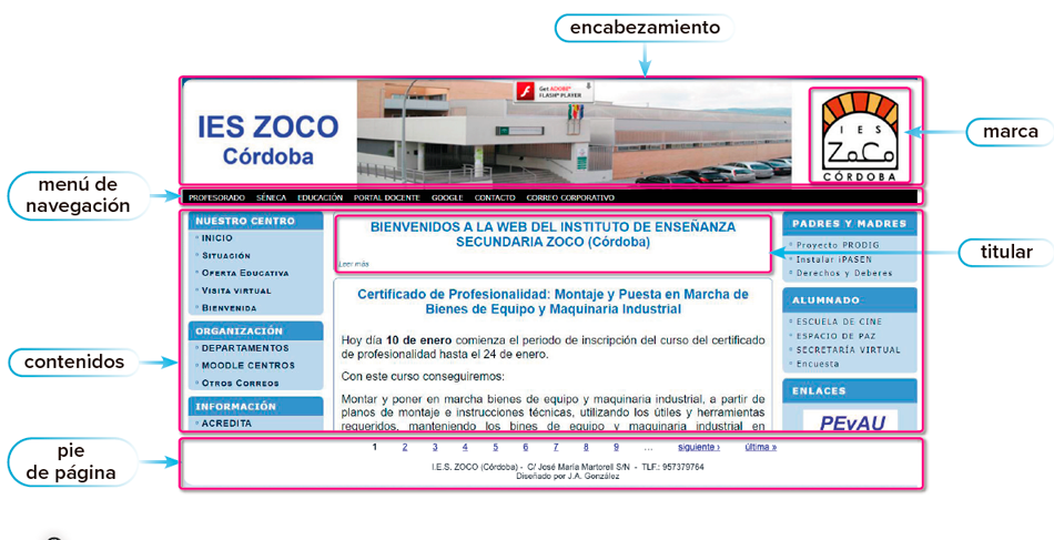 Una página web tipo tendrá, a grandes rasgos, los siguientes elementos: