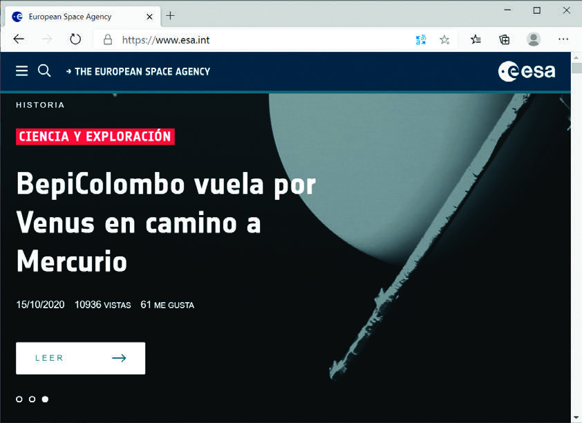 - Accede a cualquier web (por ejemplo, la de la Agencia Espacial Europea: www.esa.int).