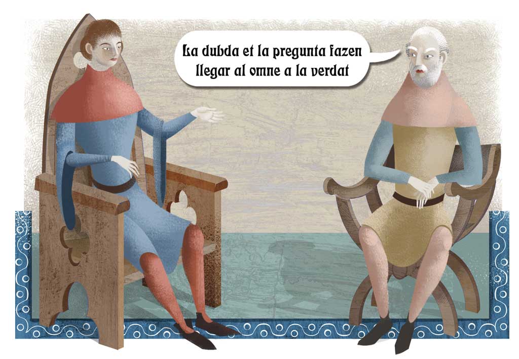 Los personajes de la imagen representan al conde Lucanor y a su ayo Patronio, los dos protagonistas de la colección de cuentos medievales El conde Lucanor.