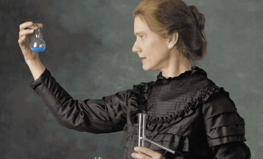 e) Escribe tres adjetivos que correspondan a cada parte del retrato de Marie Curie: descripción moral y descripción física.