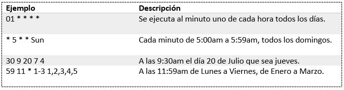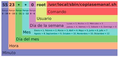 • Cron es un administrador regular de procesos en segundo plano (demonio) que ejecuta procesos o guiones a intervalos regulares (por ejemplo, cada minuto, día, semana o mes).