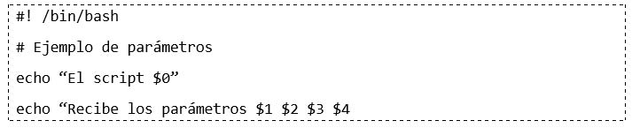 Sus nombres son $1, $2, $3, etc. Además disponemos el parámetro $0 que guarda el nombre del script donde se ejecuta.