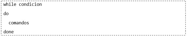 • while: Ejecuta una serie de comandos mientras que una determinada condición se cumpla.