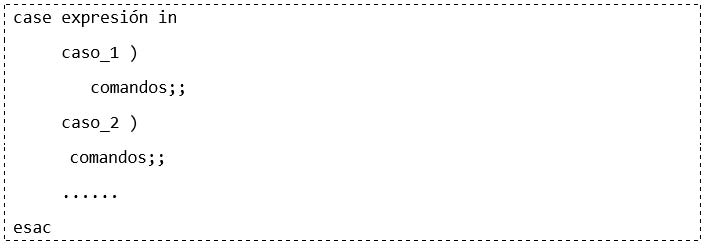 Esta estructura de control nos permite realizar comparaciones de cadenas alfanuméricas o numéricas y atributos de ficheros.