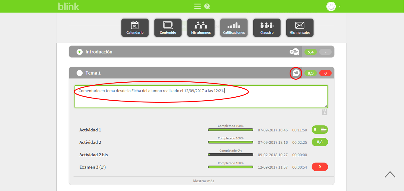 . Este comentario lo podrá ver el alumno desde su perfil.