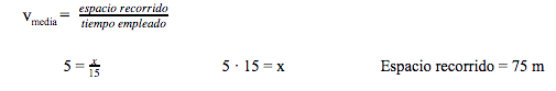 ¿Cómo calcularíamos el espacio que ha recorrido el móvil que va a 5 m/s en un tiempo de 15 segundos?