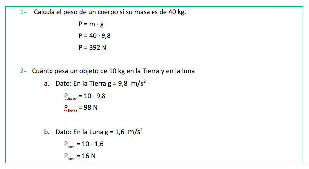 donde P es el peso de cuerpo en newtons (N), m es la masa del cuerpo en kilogramos (kg) y g es una constante, la gravedad, cuyo valor es 9,8 m/s2 en la Tierra.
