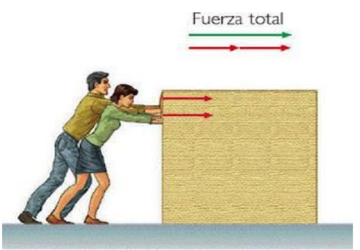 Si dos o más fuerzas actúan sobre el mismo objeto con el mismo punto de aplicación y la misma dirección, pueden sumarse fácilmente obteniendo la resultante que es otra fuerza que tiene la misma dirección y sentido que las anteriores y su módulo será la suma de los módulos. Si tienen la misma dirección pero sentidos contrarios, sus valores se restan y la fuerza resultante tendrá el sentido de la mayor de ellas.