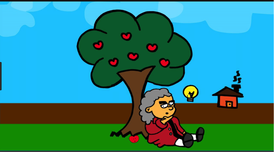 Newton se encontraba sentado bajo un árbol reflexionando, cuando una manzana cayó a su lado, Newton se sintió́ inspirado y pensó “¿Por qué tiene que caer