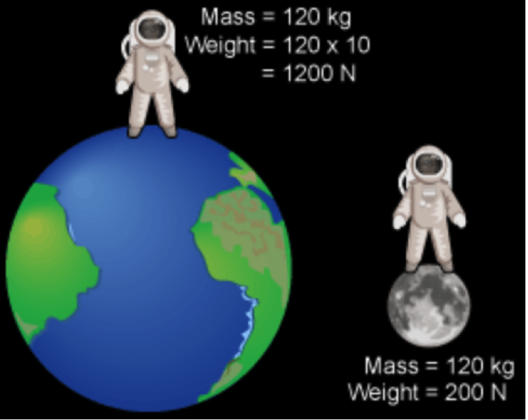 Si un cuerpo está en la Tierra esta le atraerá con una determinada fuerza, pero si está en otro lugar, por ejemplo la Luna, la fuerza con la que será atraído será diferente.