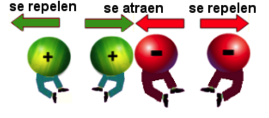Entre dos cuerpos con carga eléctrica, aparece una fuerza que actúa a distancia y que dependerá del valor de de sus cargas y de la longitud que las separa. Los cuerpos se atraerán o repelerán dependiendo de que ambos tengan carga del mismo tipo o tipo contrario.