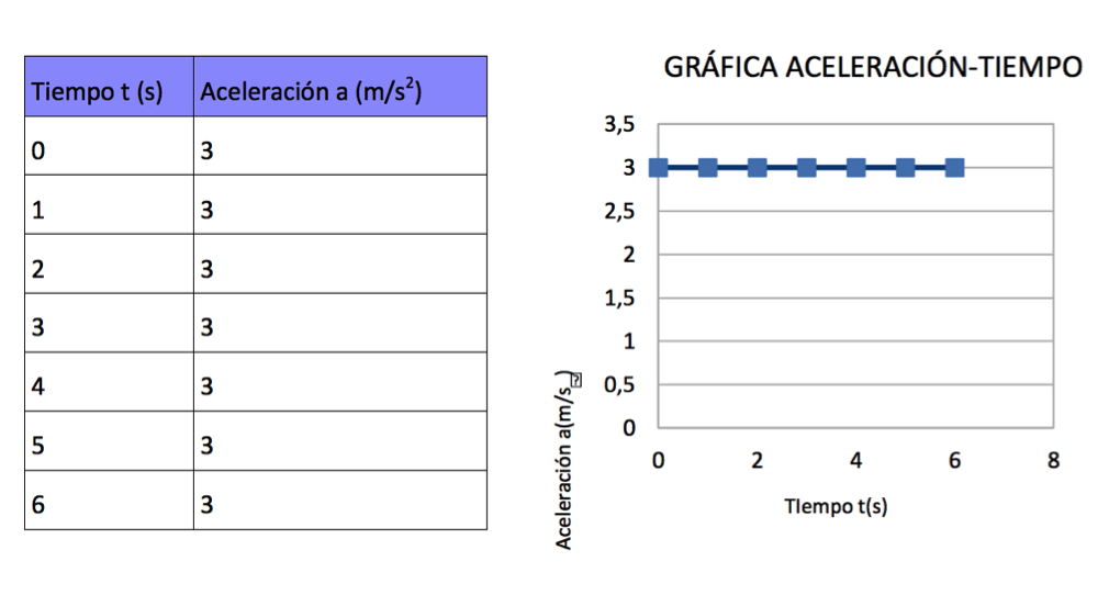 En este tipo de movimiento vamos a representar gráficamente la aceleración en función del tiempo y la velocidad en función del tiempo.