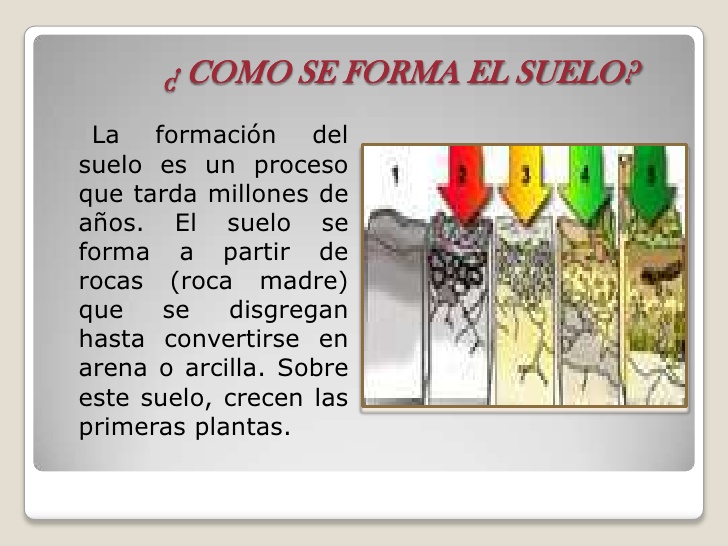 Es importante que conozcas cómo se forma el suelo y que tarda mucho tiempo en formarse. Para ello, observa la siguiente imagen:
